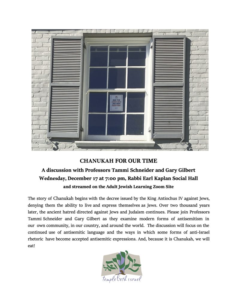 First Fridays Shabbat* – 7:30pm, Sanctuary, w/Shul Band and celebrating December birthdays
